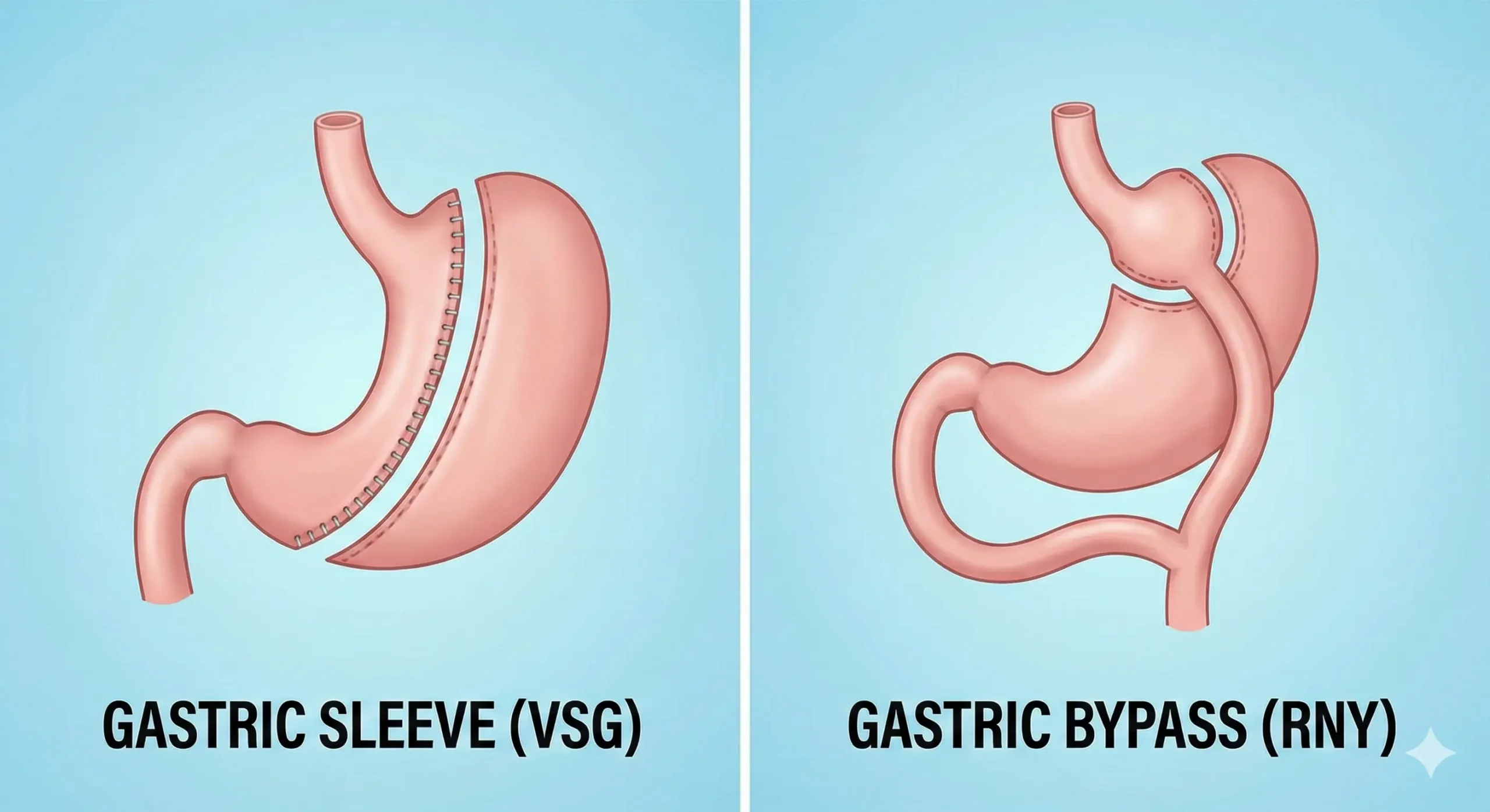 | Feature | Gastric Sleeve (VSG) | Gastric Bypass (RNY) |