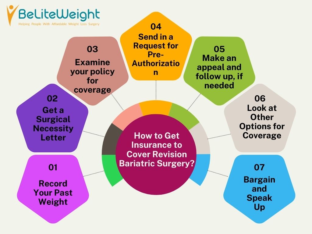 Here is a step-by-step process for how to get insurance to cover revision bariatric surgery:How to Get Insurance to Cover Revision Bariatric Surgery?