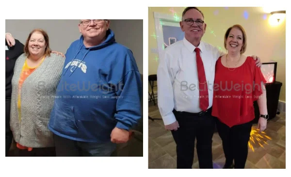 Here are some pics - My hubby Bill and I before surgery and this one taken last month.